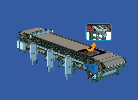 2、滤带设有牢靠的反冲刷设备,确保滤带的脱水作用,选用气动张紧和气动自动纠偏设备,确保滤带的正常运转